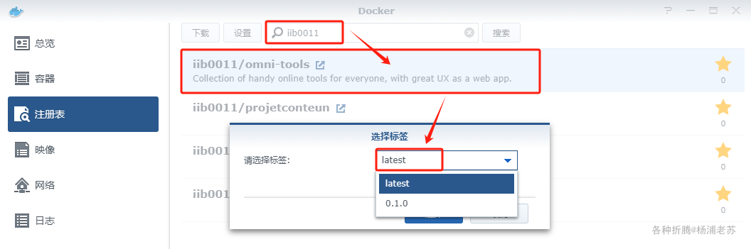 在注册表中搜索 iib0011 ,选择第一个 iib0011/omni-tools,版本选择 latest。