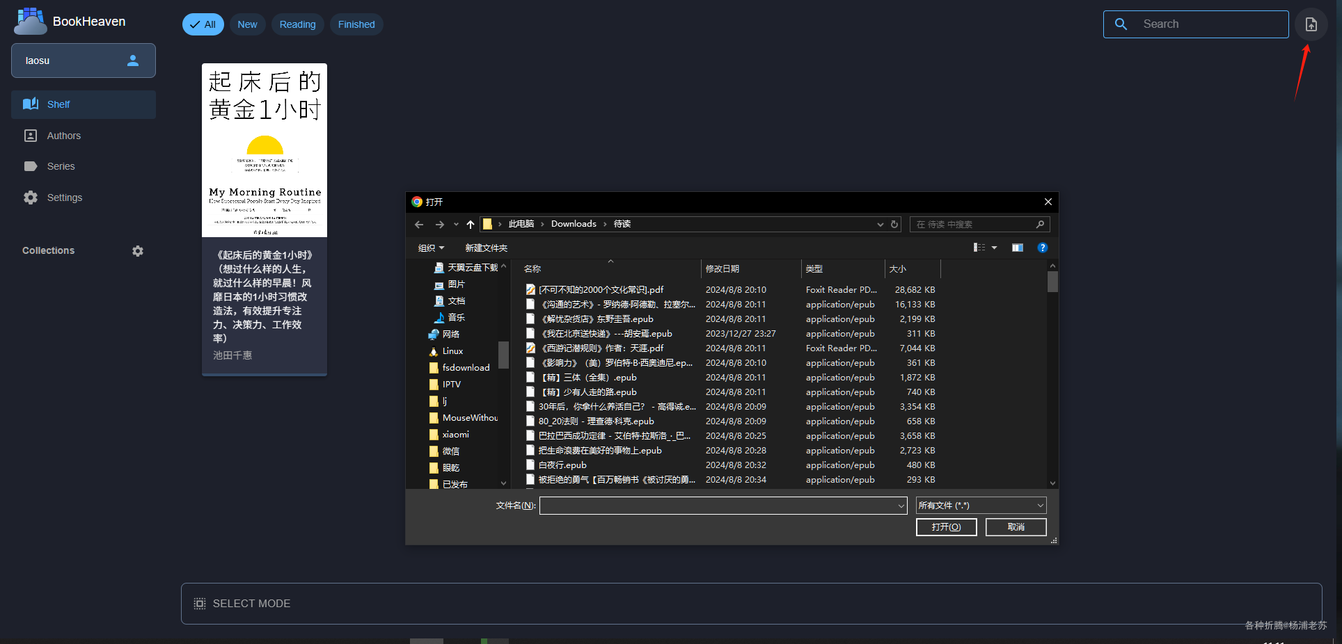 随便上传了几本用于测试