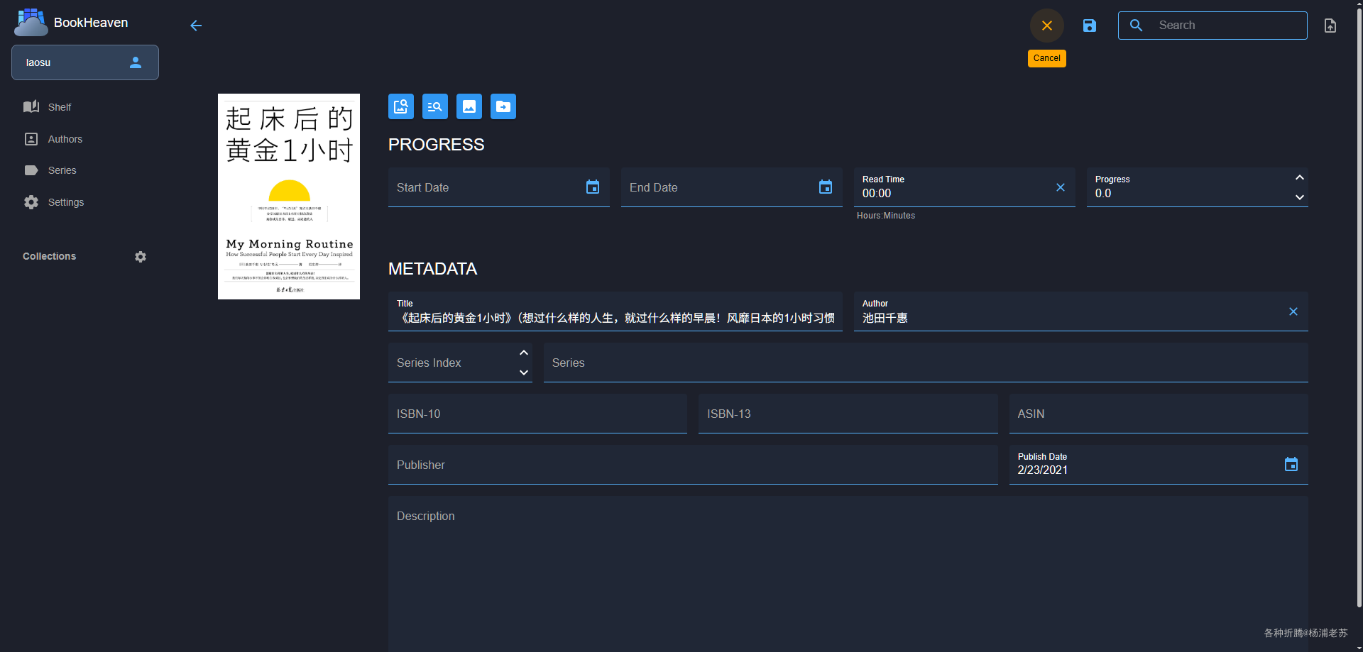 - 🕙进度跟踪:自动跟踪书籍的阅读进度,也支持手动设置。包括开始/结束日期、阅读时长、百分比等。