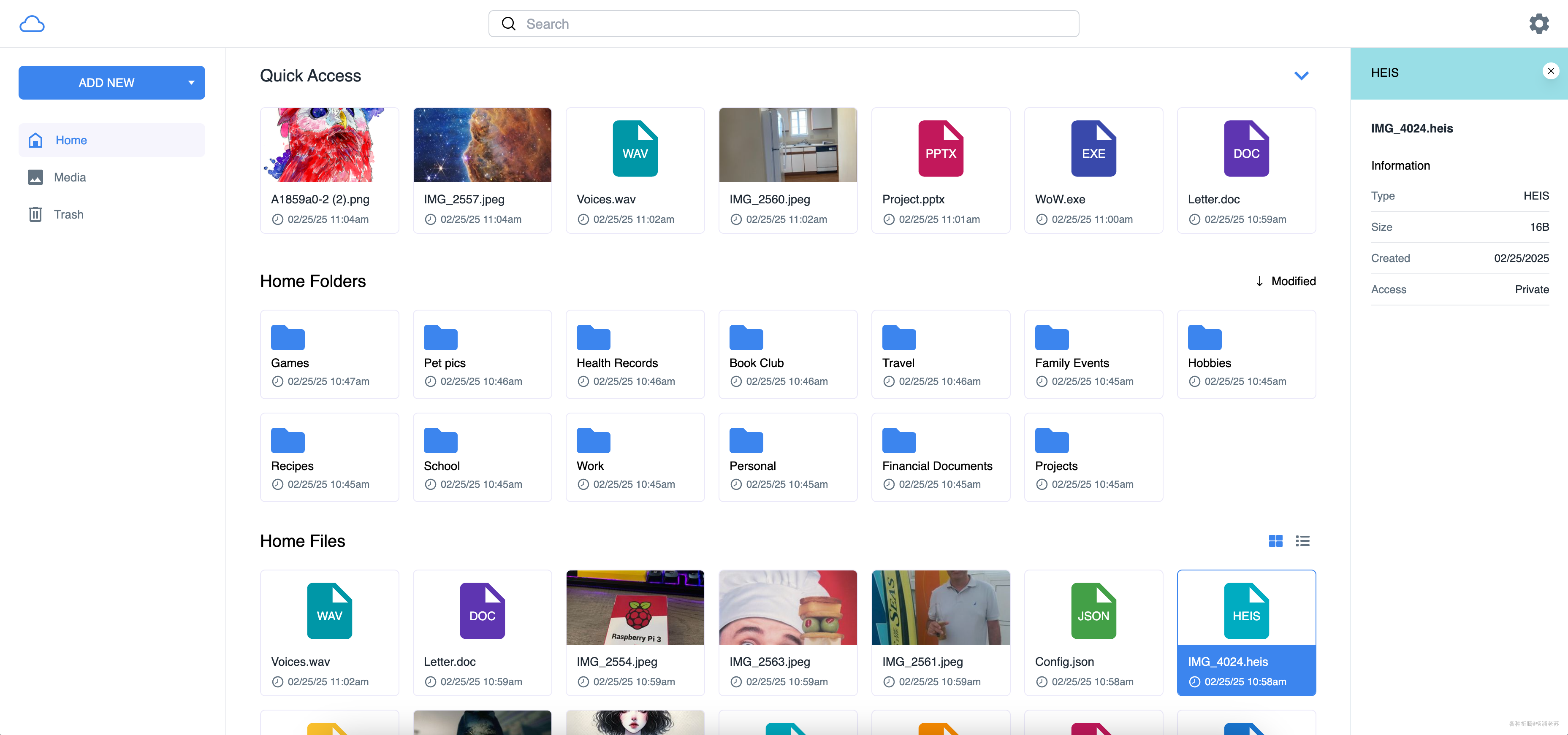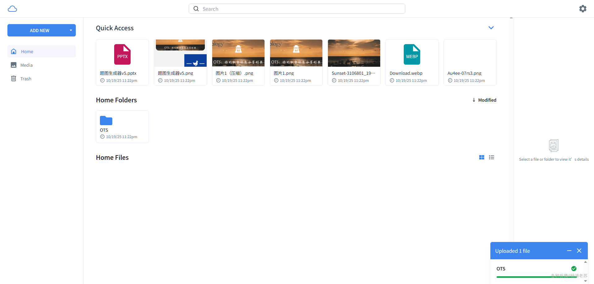界面访问、上传和下载文件与文件夹,支持文件分享、媒体库、PWA