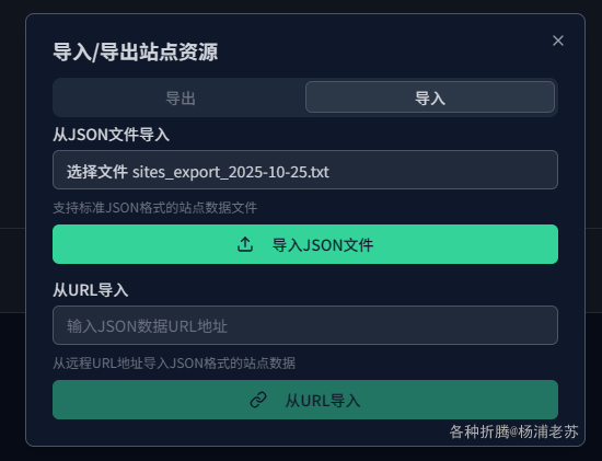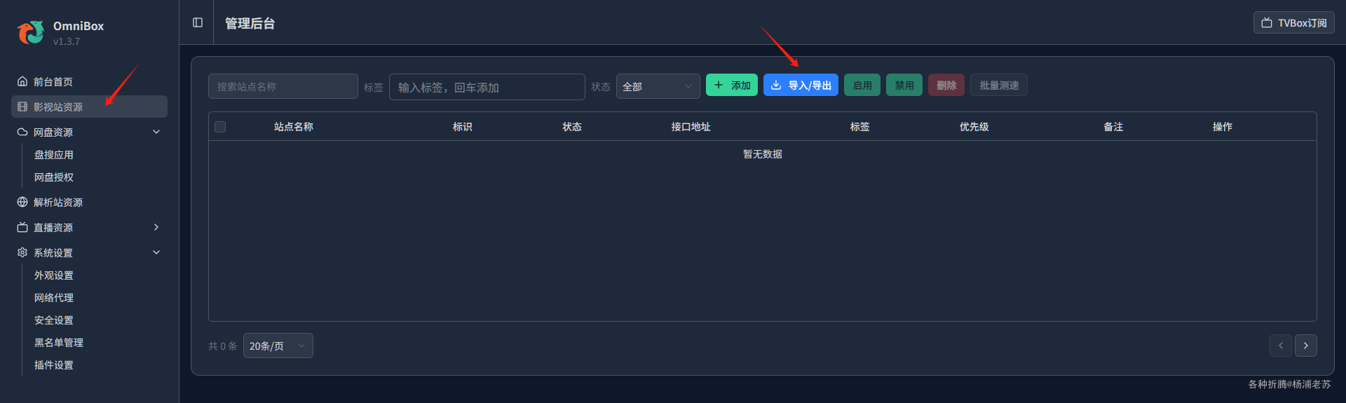 进入 我的 –> 管理 –> 影视站资源 –> 导入/导出