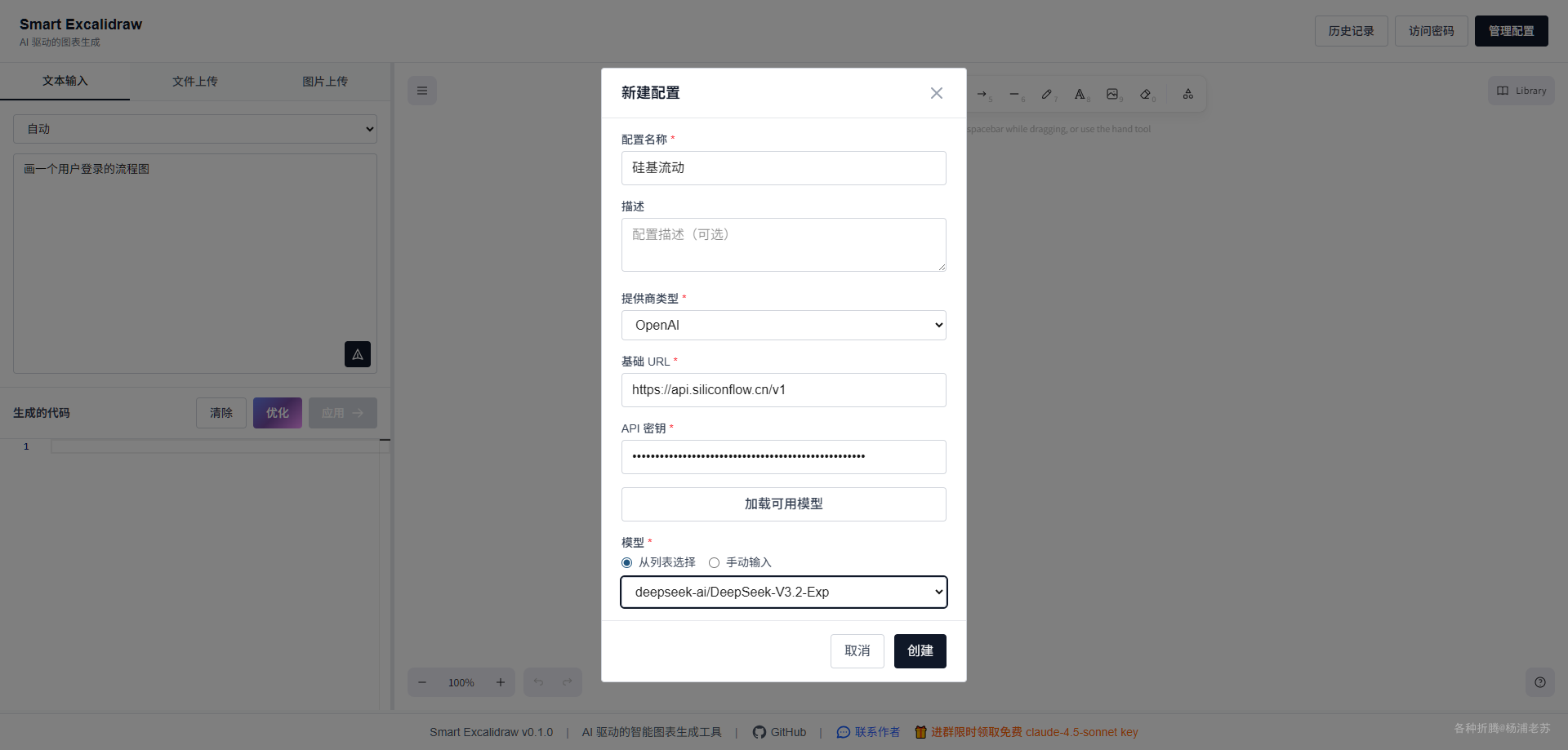 URL:以硅基流动为例,设为https://api.siliconflow.cn/v1 API密钥:你的硅基流动的API key- 模型:可以手动输入,但最好还是通过