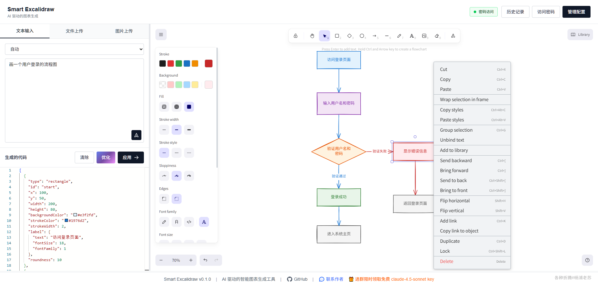 Smart-Excalidraw-Next 是一个灵活而高效的绘图工具,适合各种用户需求,特别是在视觉化表达和专业图表生成方面提供了优越的支持。