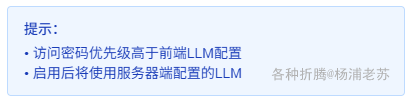 设置访问密码,用户需要输入该密码以访问服务器配置的 LLM |
