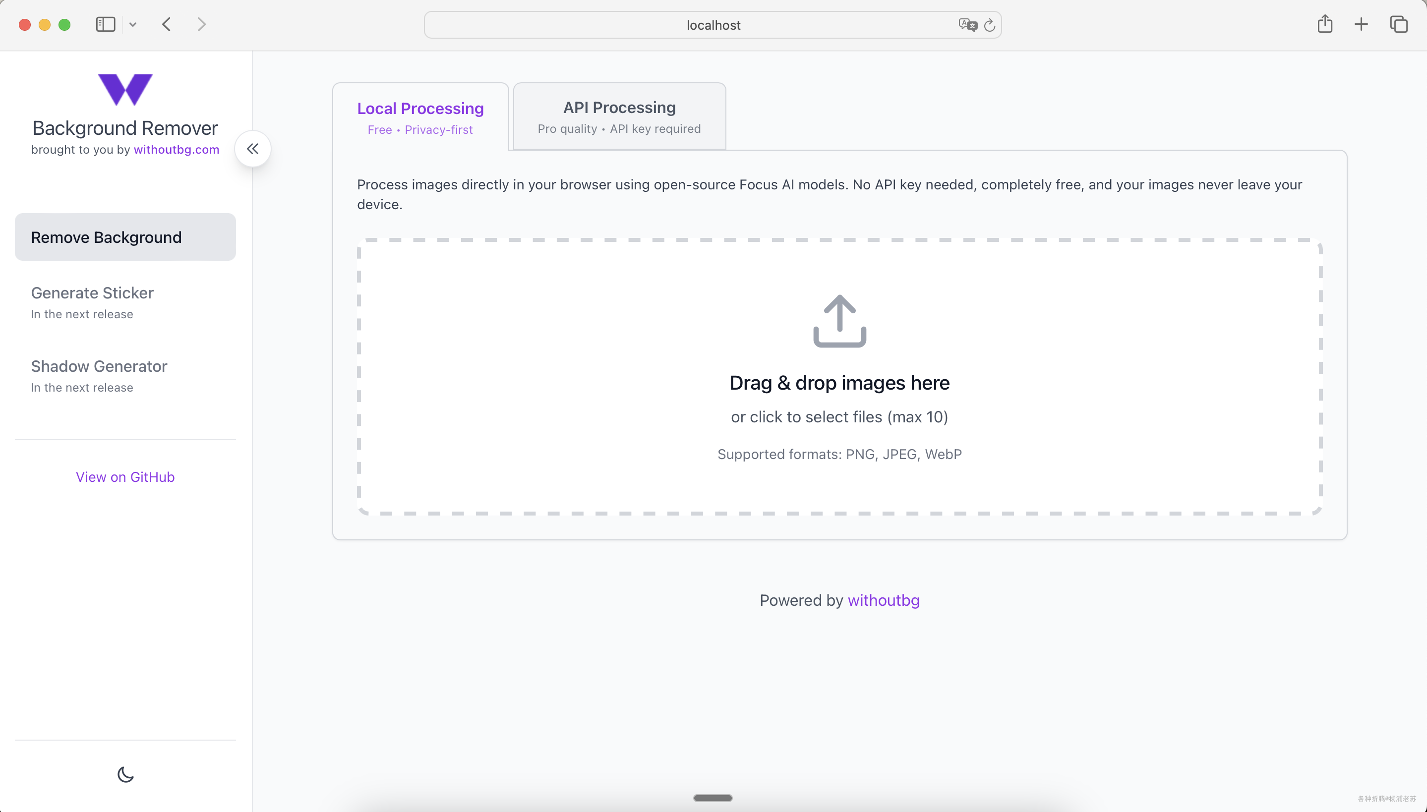 地址:https://withoutbg.com/Dockerized Background Removal Web App - Quick Start Guide