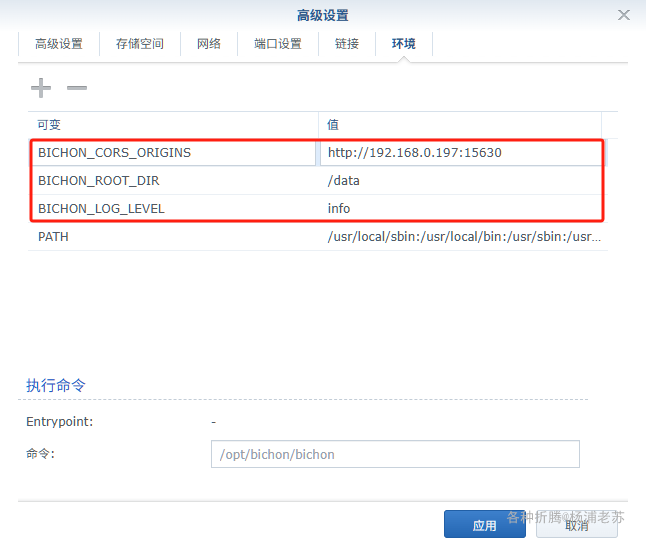 BICHON_CORS_ORIGINS http://群晖IP:15630 重要: 设置为你的访问地址