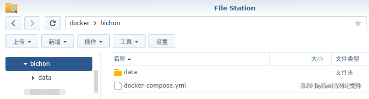 docker 文件夹中,创建一个新文件夹 bichon,并在其中建一个子文件夹 data