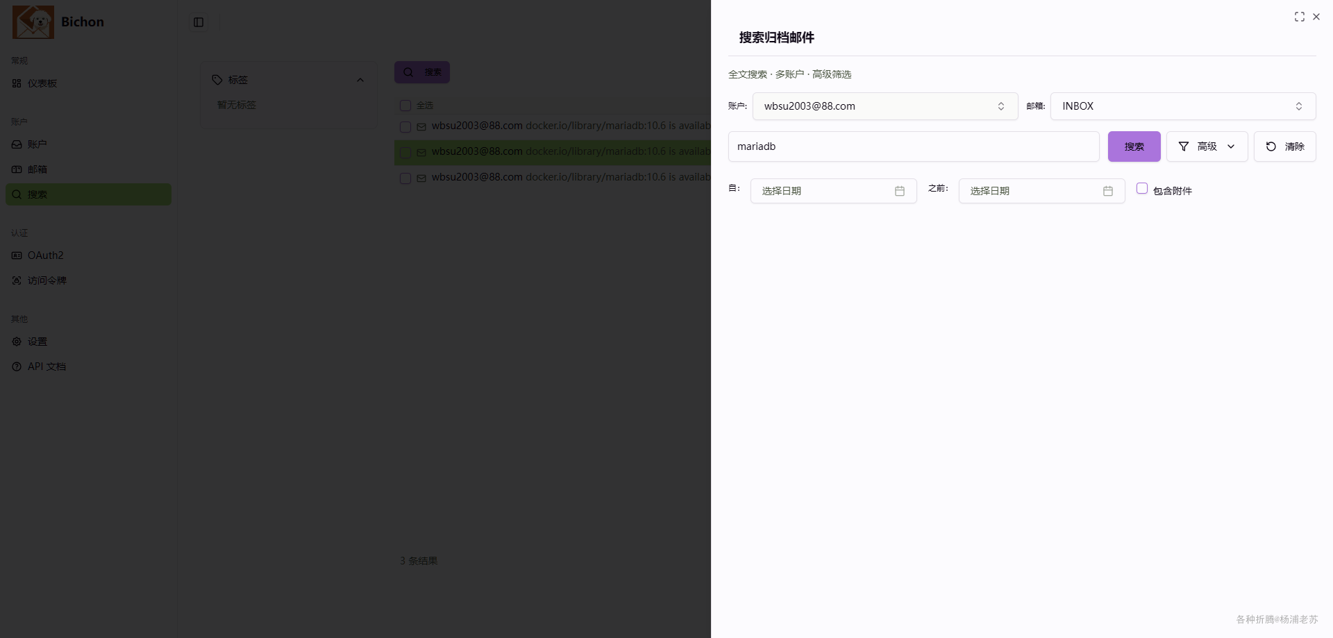 Bichon 是一个功能强大且灵活的解决方案,适合需要长期存储及管理电子邮件的用户和组织。