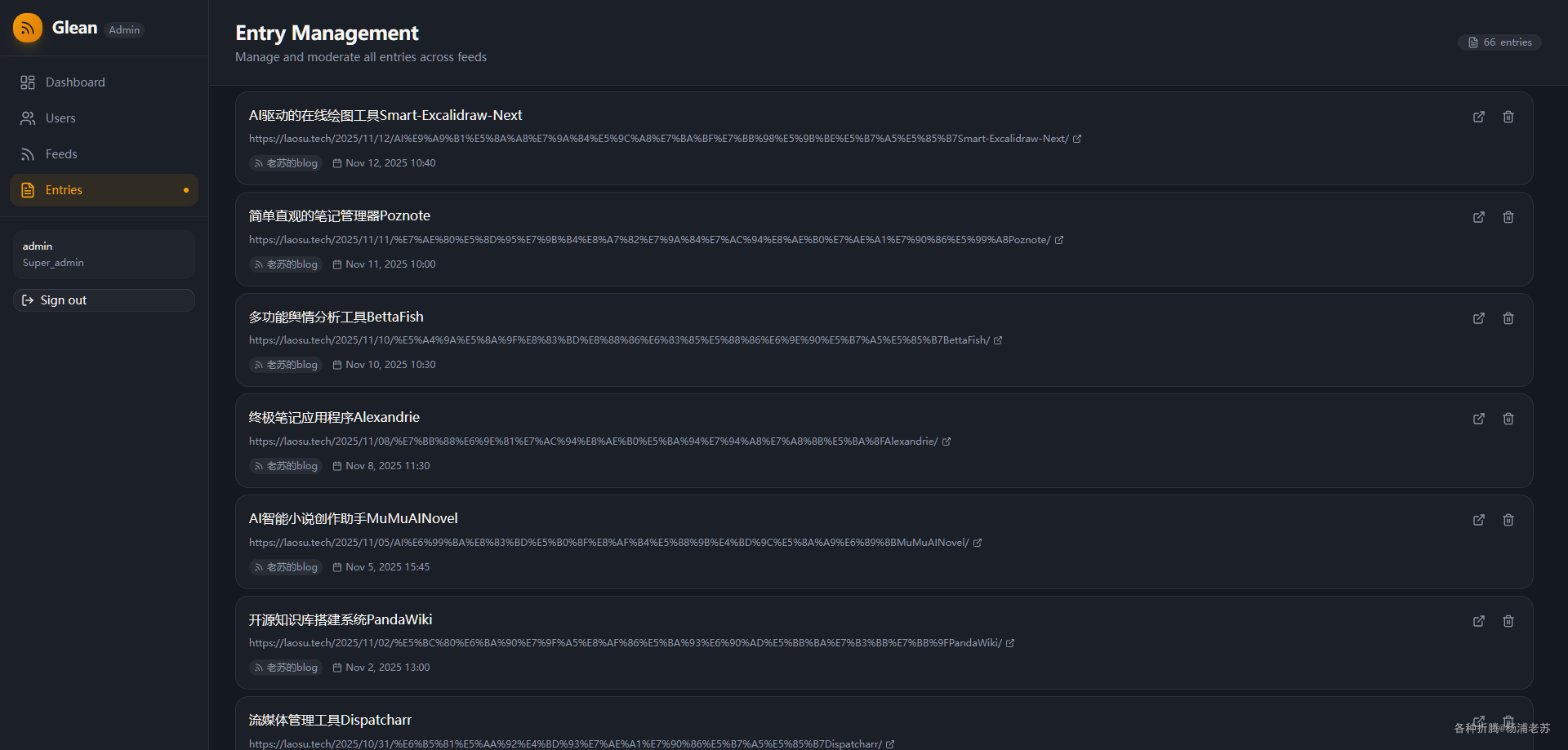# Glean Full Deployment - Docker Compose (with Admin Dashboard) # Usage: docker compose -f docker-compose.full.yml up -d # # This deployment includes the admin dashboard. # Set CREATE_ADMIN=true to auto-create admin account on first startup.