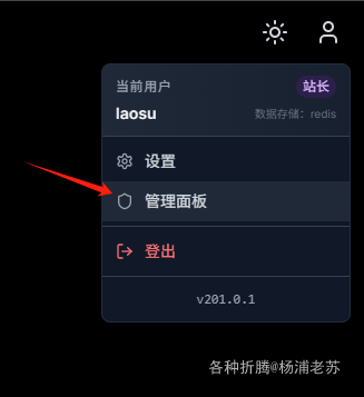 从右上角进入 管理面板