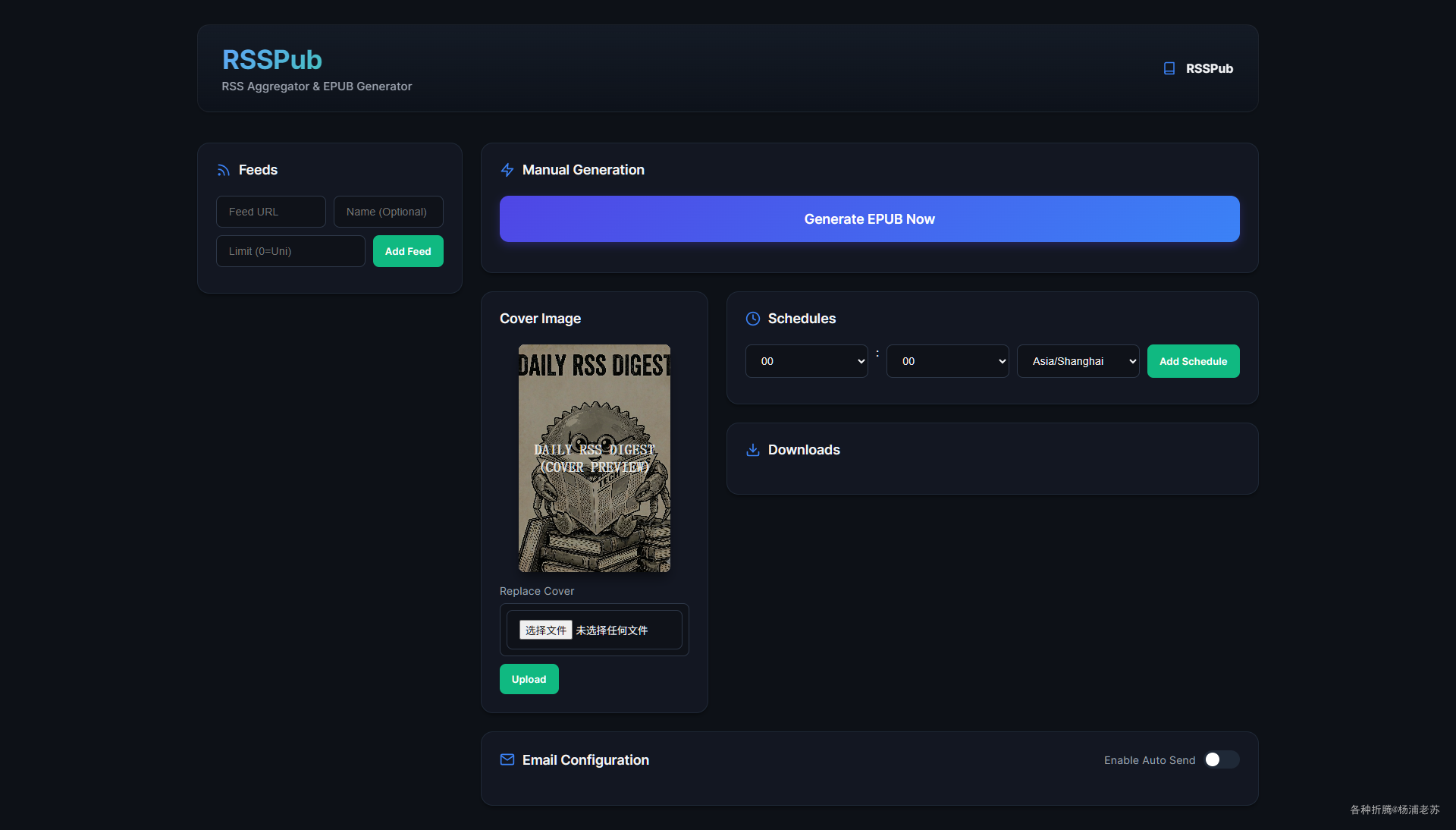 另外 RSSPub 支持 Schedule 实现定时生成,并通过邮件自动发送 epub 到 kindle
