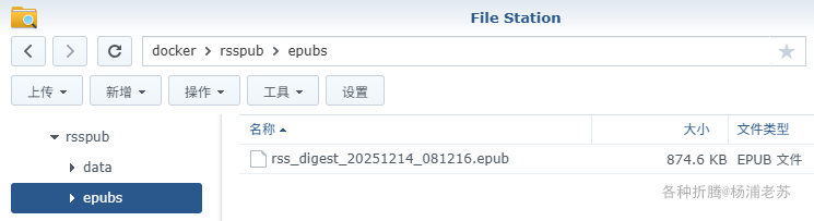 在 docker 文件夹中,创建一个新文件夹 rsspub,并在其中建一个子文件夹 data