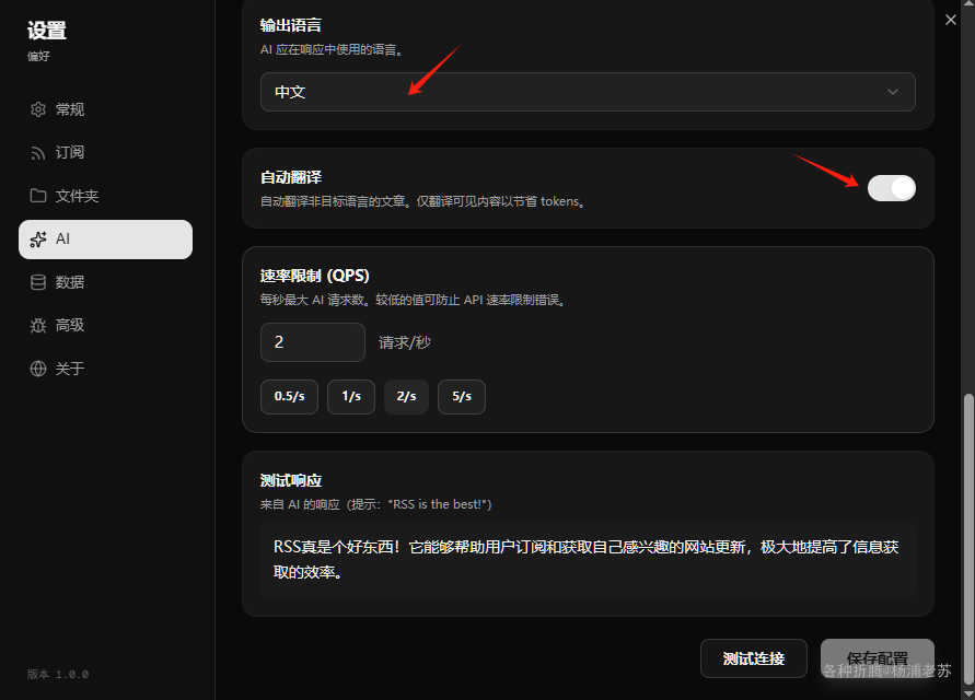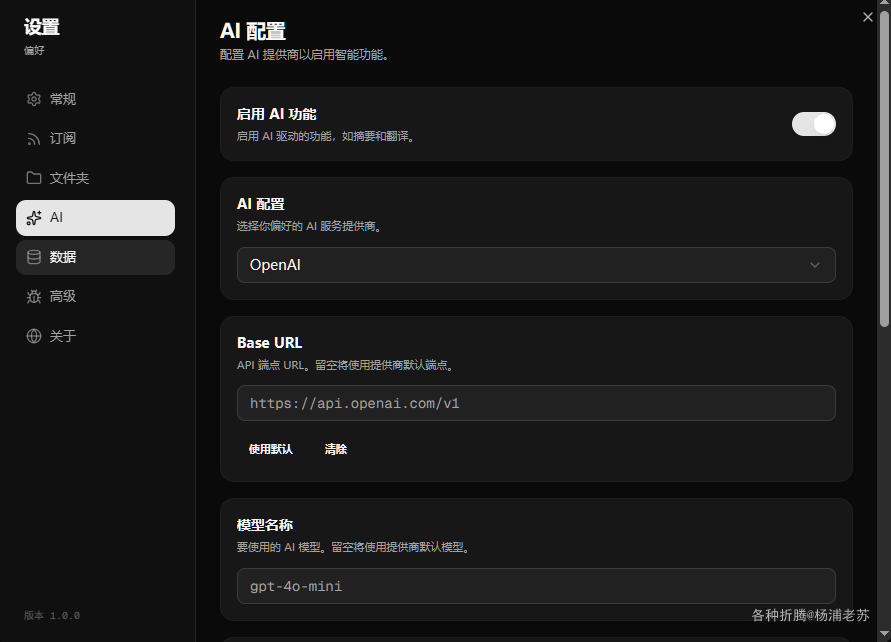 RSS源,以便在不同设备和平台之间迁移使用。 - AI 功能: