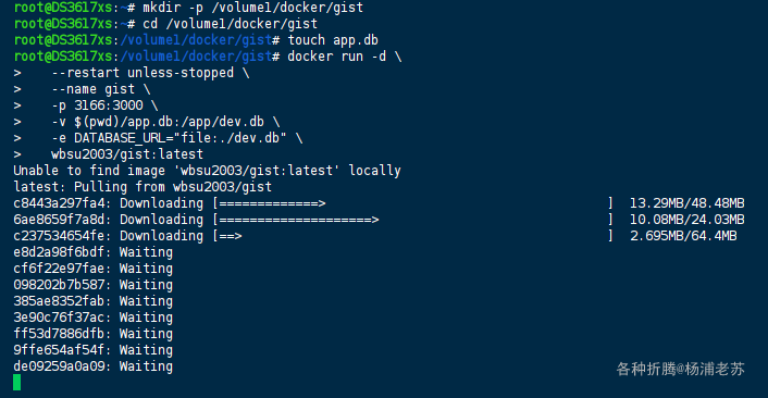 因为首次运行后,还需要进入容器初始化数据库,所以我们采用命令行方式进行安装