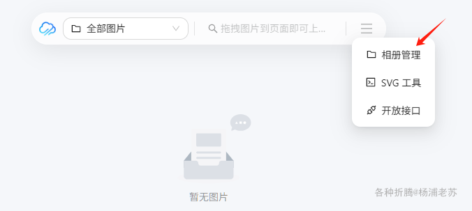 SVG转PNG等多种API。 - 便捷的上传体验:支持多图拖拽上传、图片编辑、压缩、以及通过