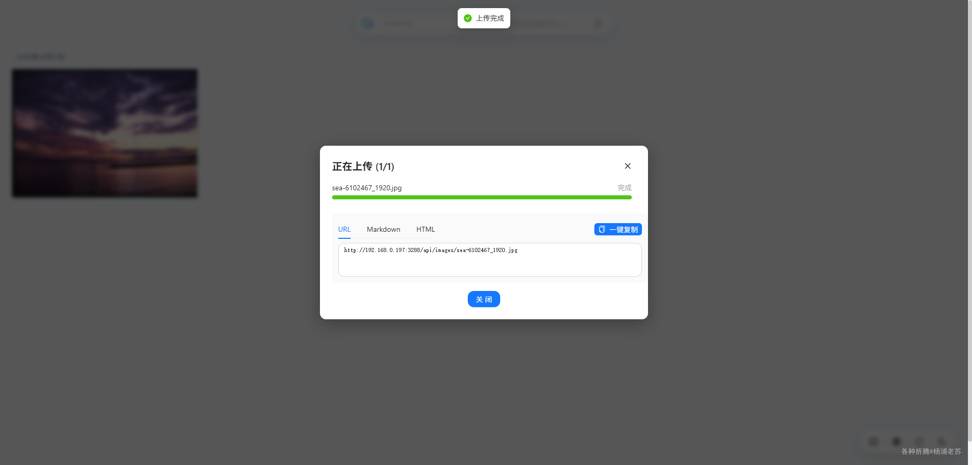 上传完成后