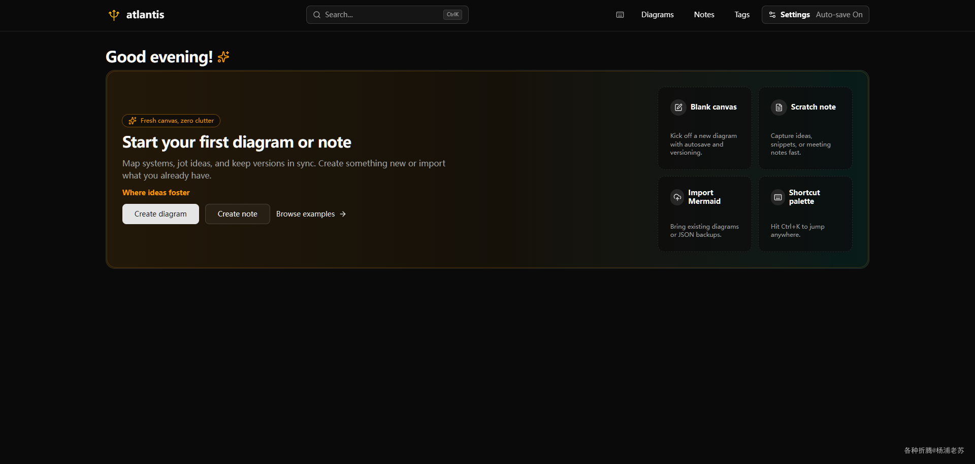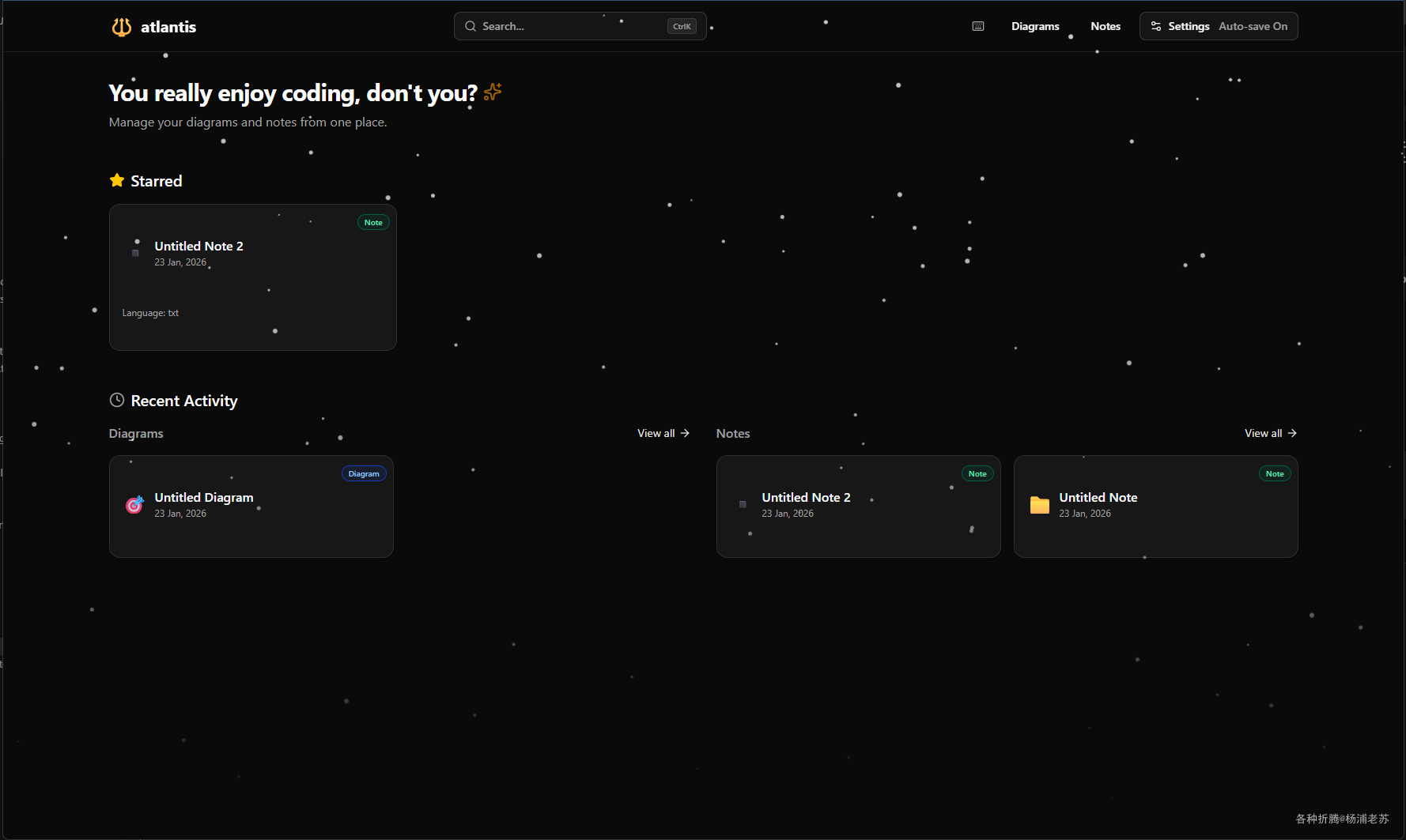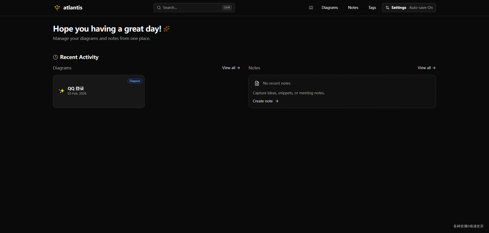 地址:https://github.com/Fantastic-Computing-Machine/atlantisAtlantis - Self-Hosted Diagrams & Notes