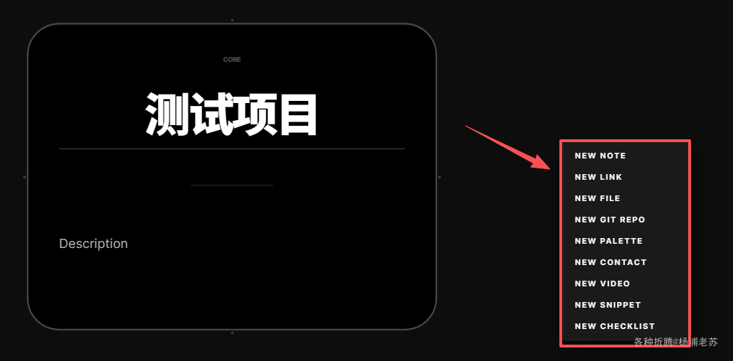 进入项目,右键可以添加各种内容,包括笔记、文件、链接、待办等