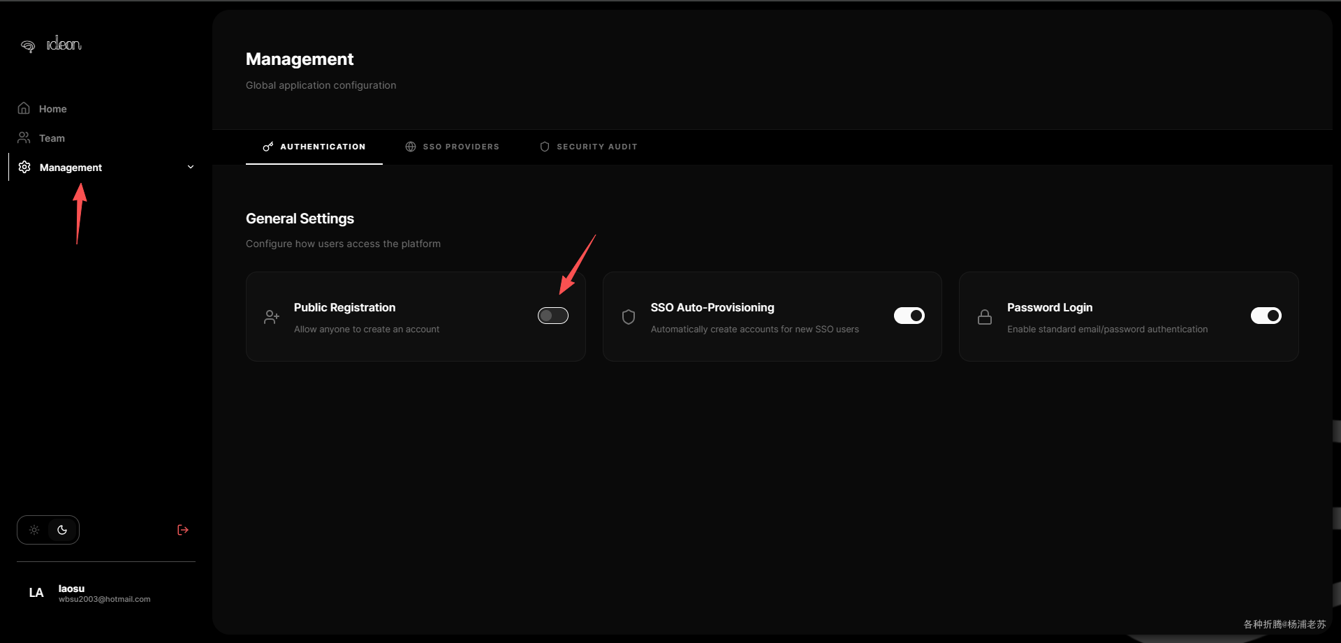 首先要在 Management → Authentication → 把 Public registration 打开