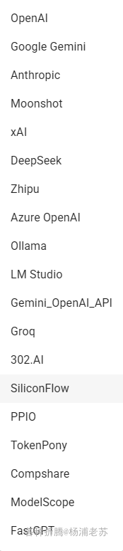 支持的提供商比较多