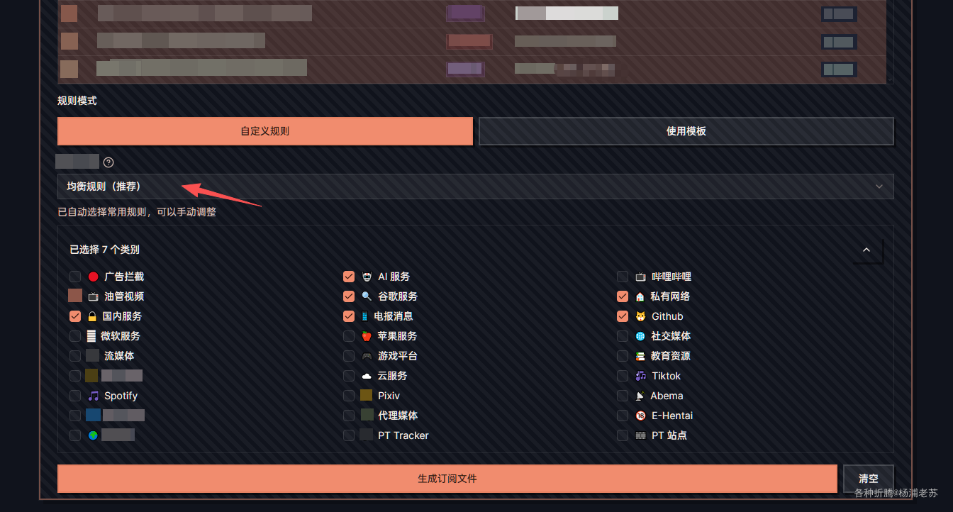 - 🔧生成订阅:可自定义规则或使用模板快速生成订阅。