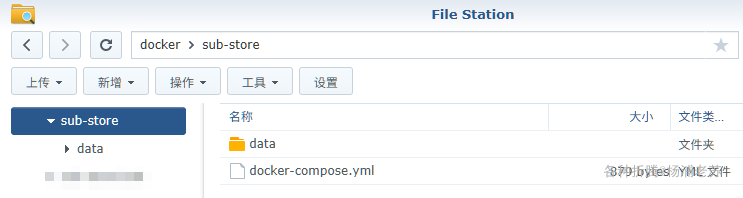 在 docker 文件夹中,创建一个新文件夹 sub-store,并在其中建一个子文件夹 data