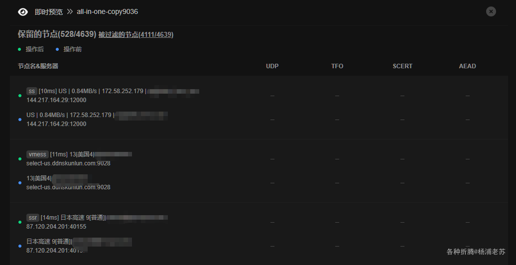 - 希望剔除订阅中不需要的地区或类型的节点。