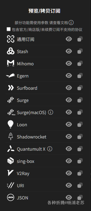 点击这条组合订阅,会弹出订阅类型,可根据自己的客户端选择