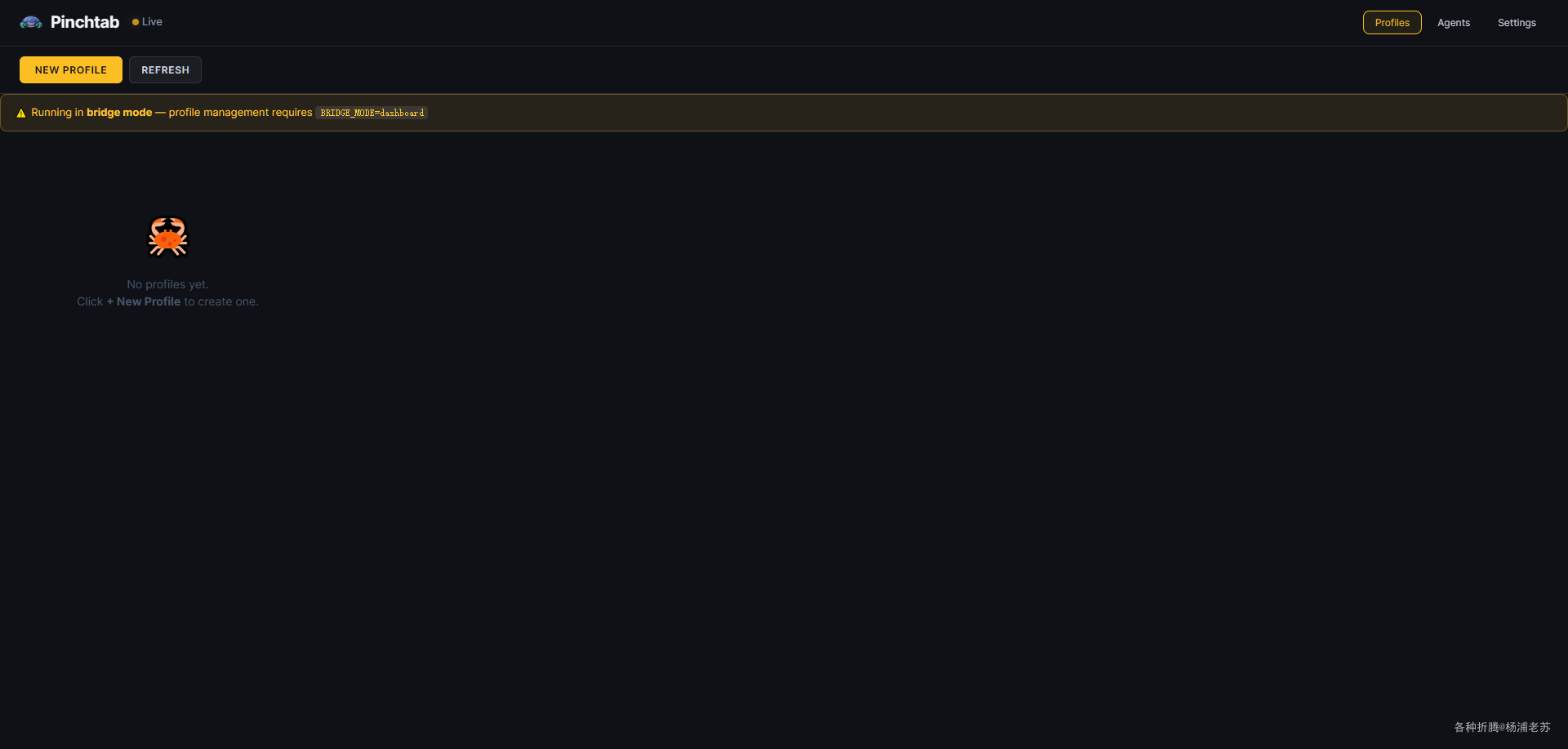 在浏览器中输入 http://群晖IP:9867/dashboard 就能看到 PinchTab 的管理面板