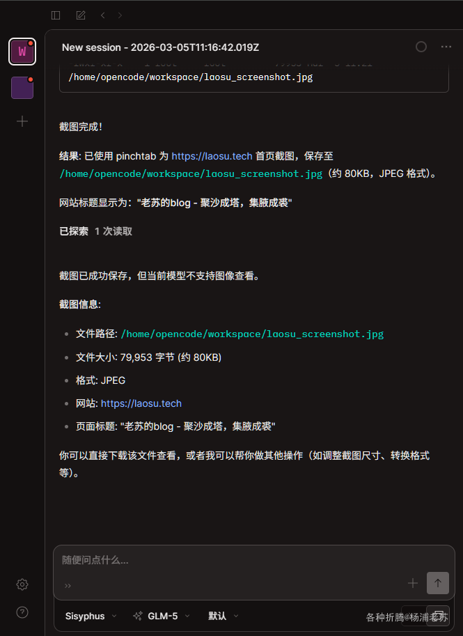 虽然龙虾(OpenClaw)很火,但老苏没怎么折腾,我更喜欢基于 Docker 安装的 OpenCode,可玩性比较高,通过插件,是可以实现跟 OpenClaw 一样的功能的