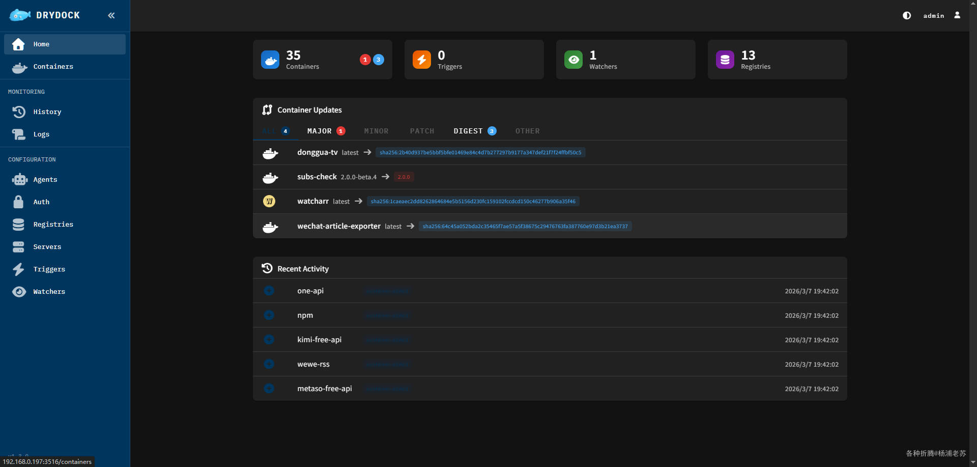 - 🏠 个人 homelab:监控家庭实验室中的所有容器更新