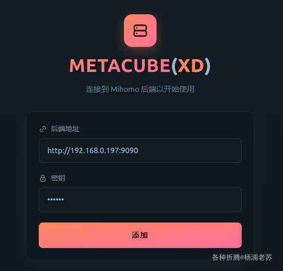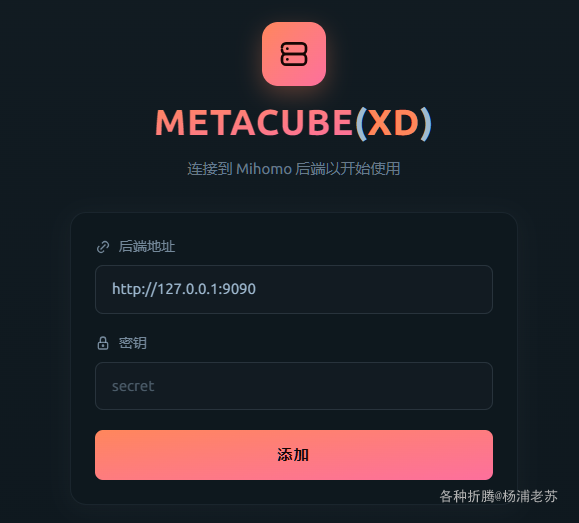 | external-ui: /root/.config/mihomo/ui external-ui-name: metacubexd external-ui-url: "https://github.com/MetaCubeX/metacubexd/archive/refs/heads/gh-pages.zip"