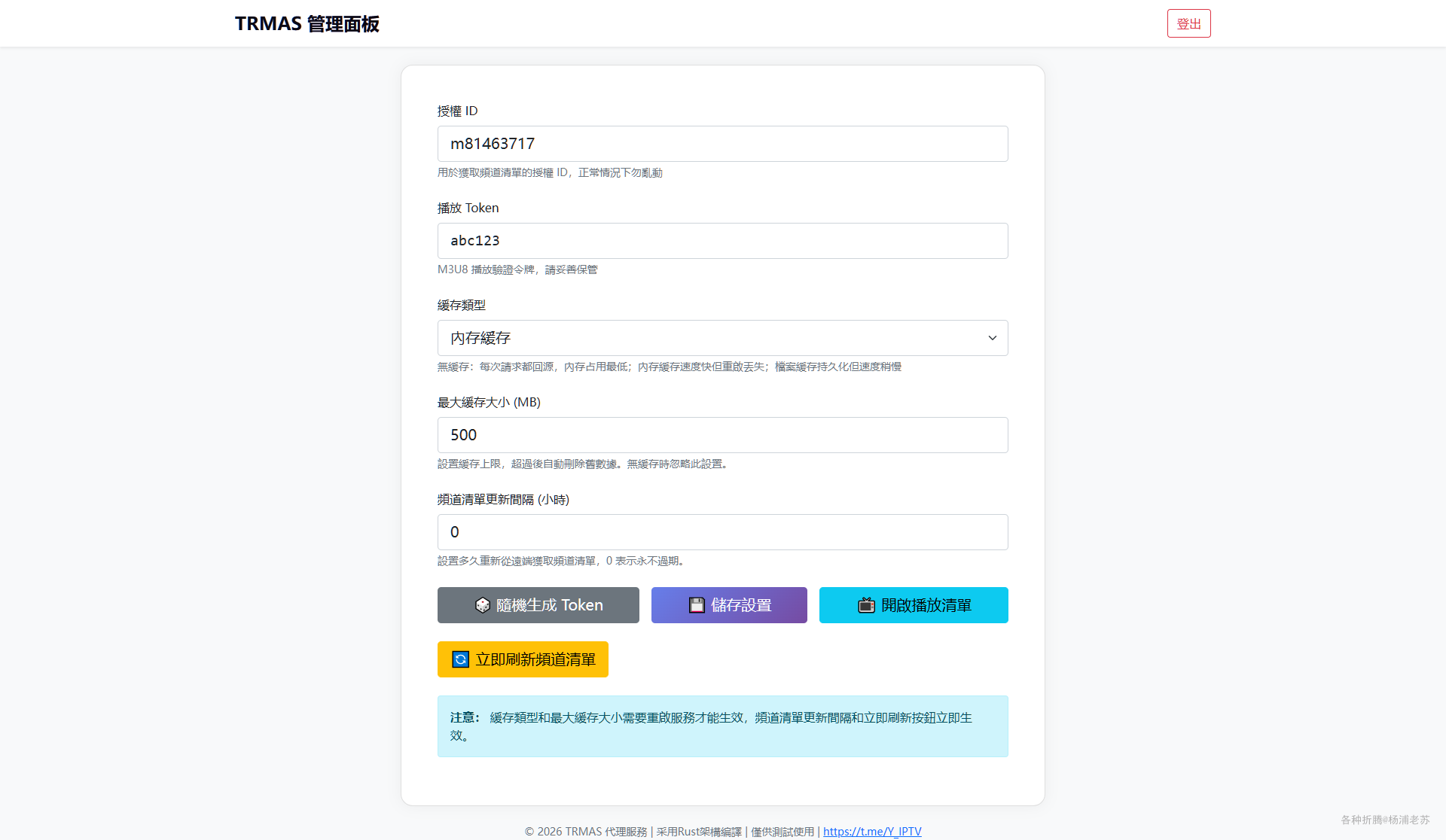 总的来说,iptv-trmas 是一个轻量级的直播源管理工具,适合自建使用。