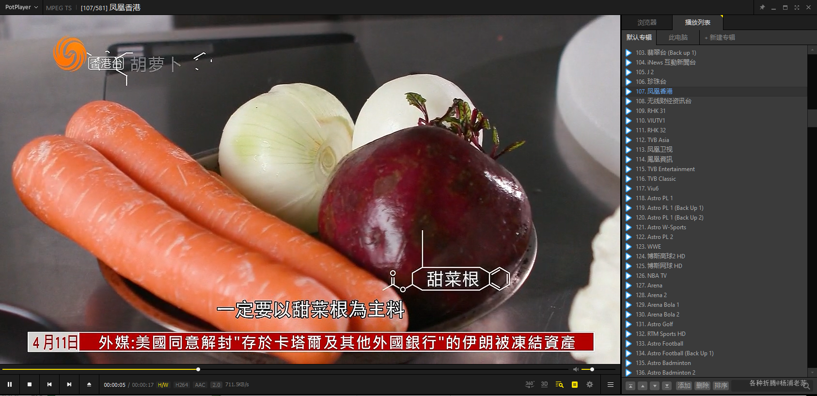 在 PotPlayer 中打开上面的链接,选择打开一个频道