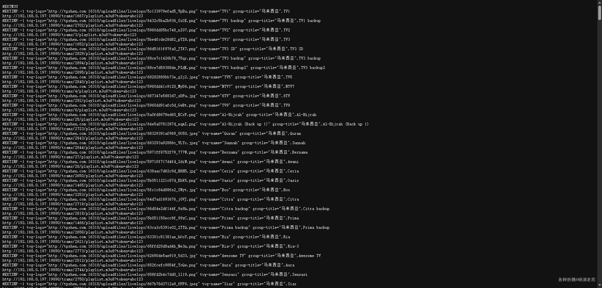 点 开启播放清单,会打开一个新页面 http://群晖IP:19890/trams.m3u?token=abc123