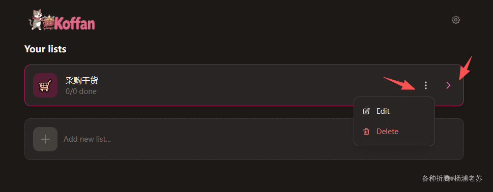 轻量级购物清单管理应用Koffan
