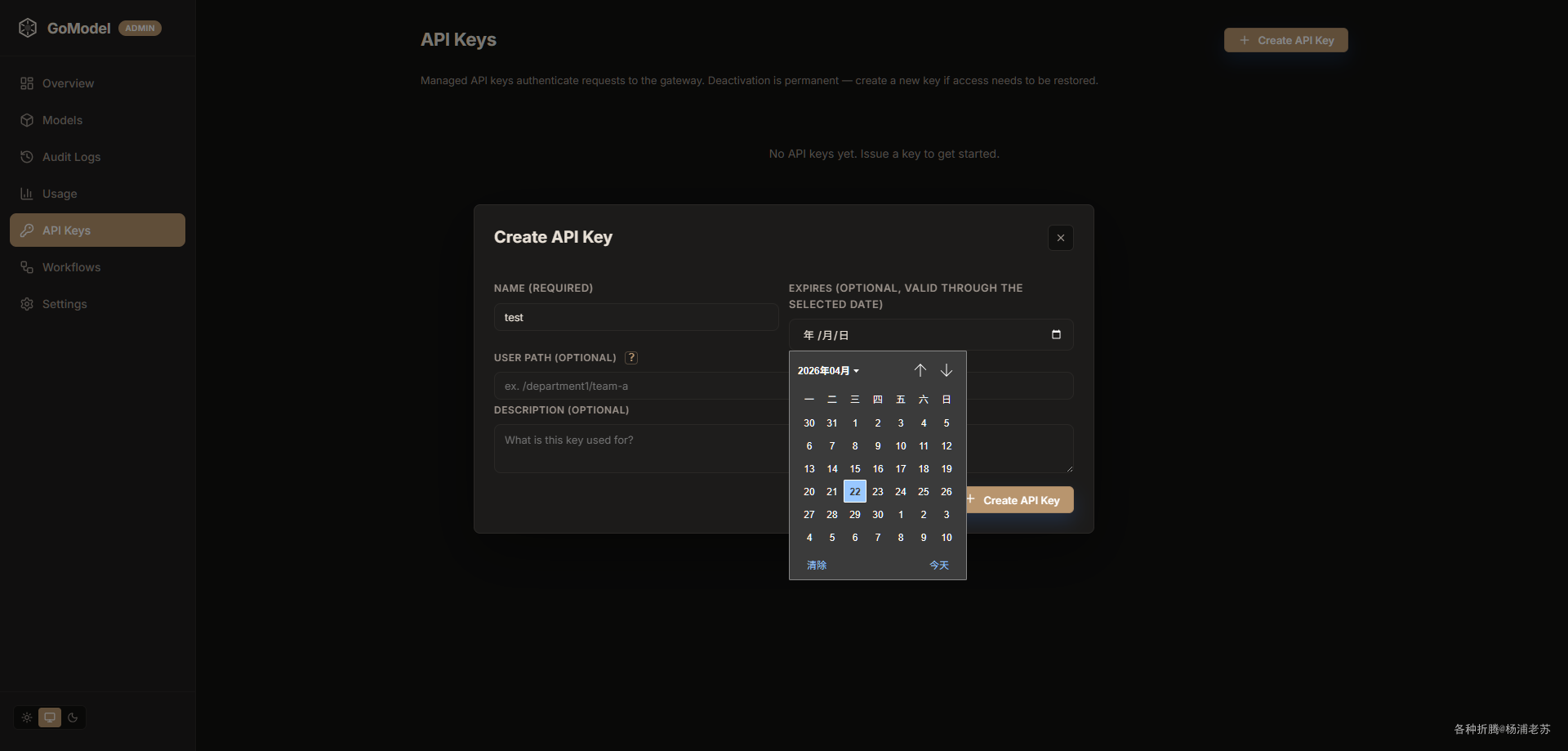 Create API Key,可以设置到期时间