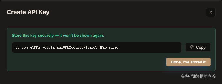 这个 API Key 只显示一次