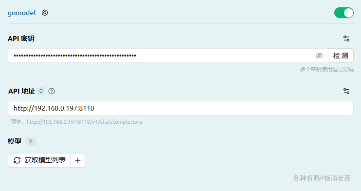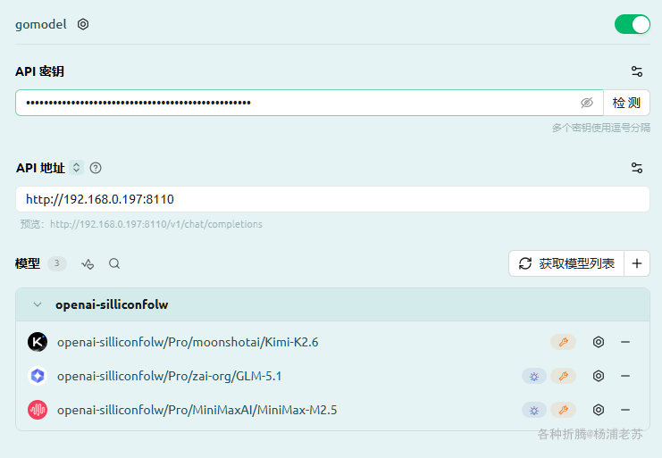 • API 地址:就是 GoModel 的地址