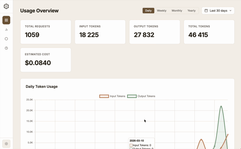 • 管理界面:提供 Web 管理仪表板,直观查看使用情况和日志