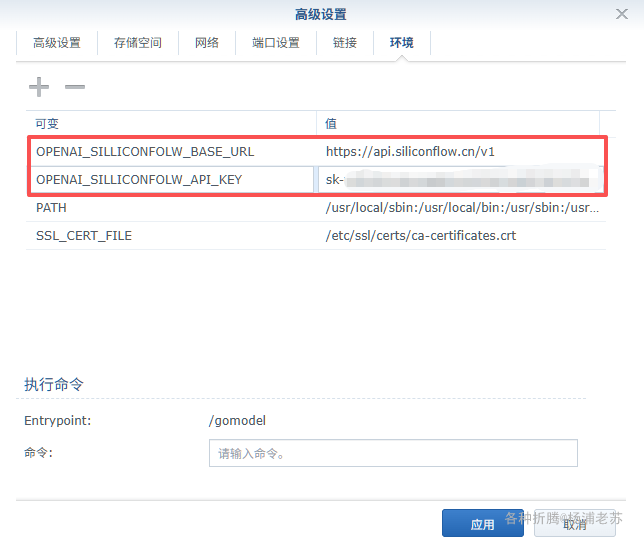 还是以 硅基流动 为例,为了区别多个自定义 API,在环境变量中使用了下面的变量