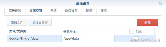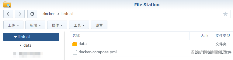 在 docker 文件夹中,创建一个新文件夹 link-ai,并在其中建一个子文件夹 data