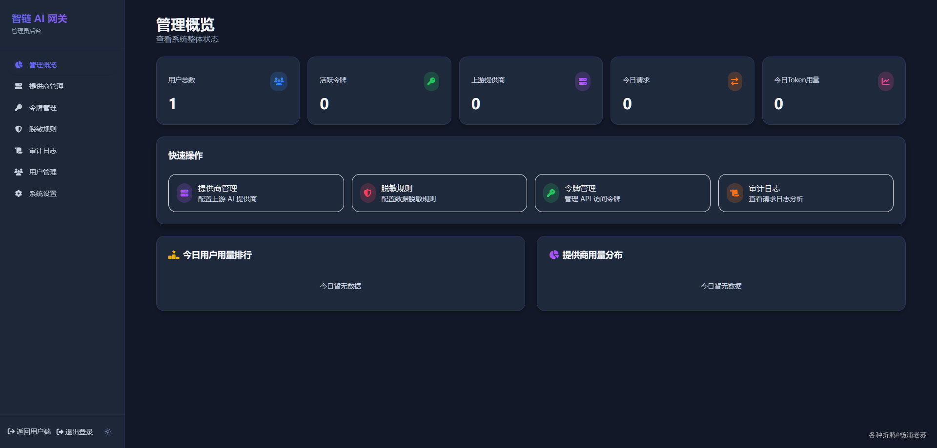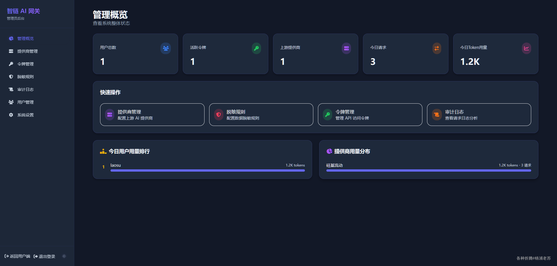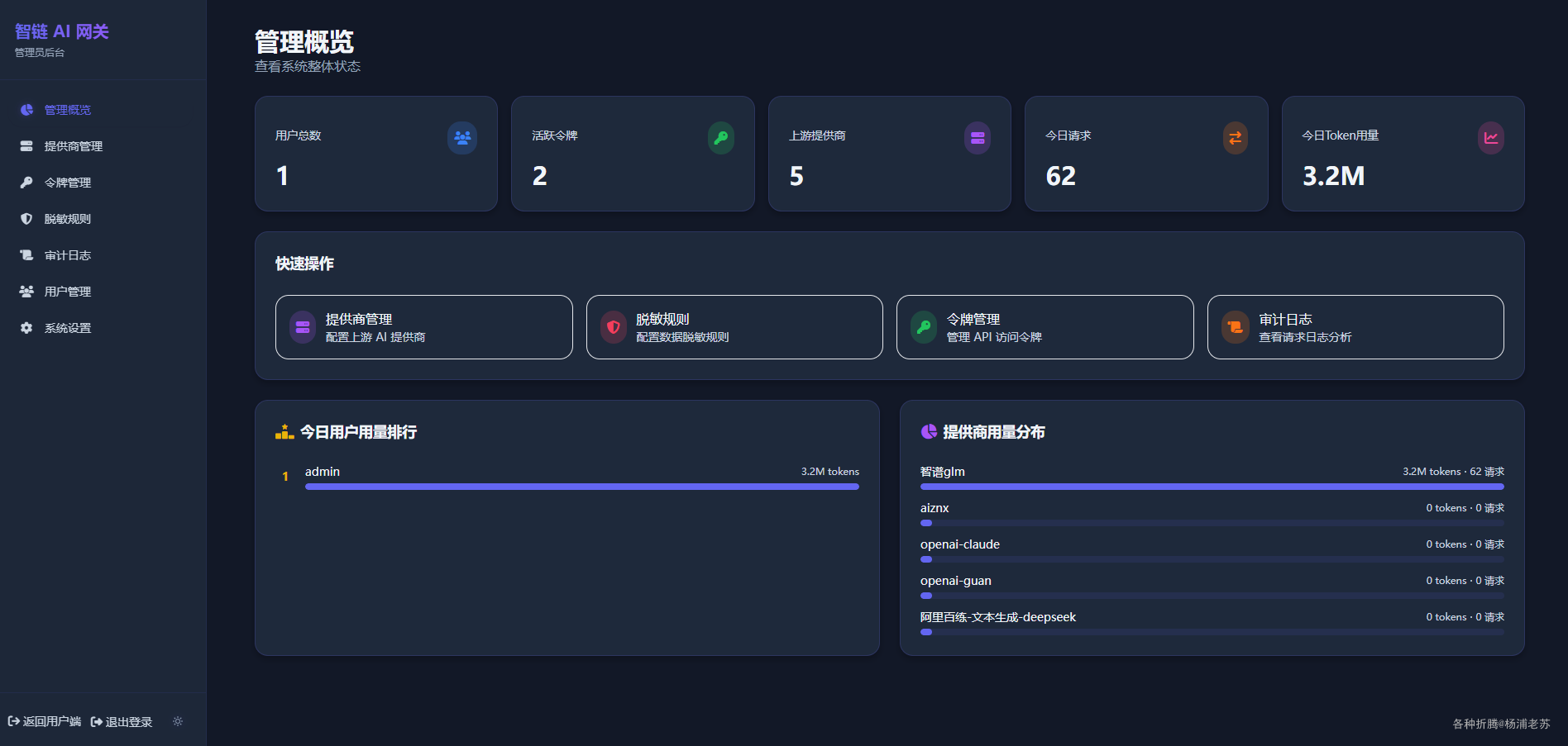LinkAI(智链AI网关)是一个面向企业和个人的大模型安全接入网关。它可以在统一代理转发大模型API的基础上,内置数据脱敏、隐私保护、全链路审计三大安全能力,确保敏感信息不泄露、每次调用可追溯。支持OpenAI、Anthropic、Azure、通义千问、DeepSeek等主流提供商,三态熔断器保障高可用。