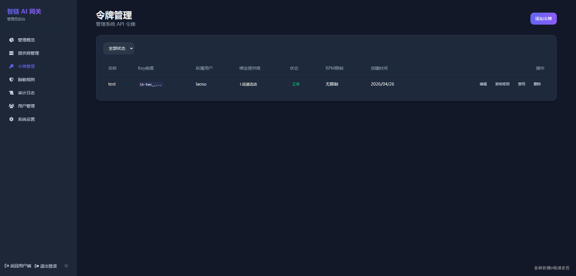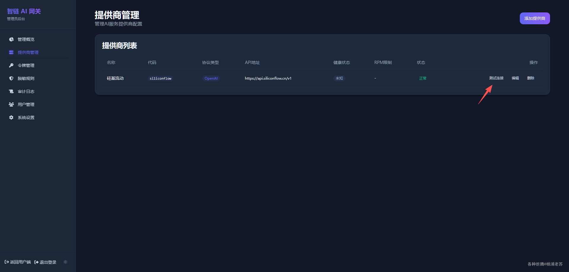 - 全链路容灾自愈:三态熔断器 + 健康探测 + 自动切换备用提供商,AI 调用稳定不掉线